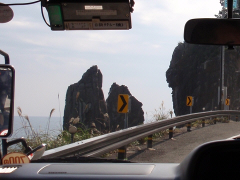 利用したジャンボタクシー(上左写真は満濃池の畔にて)は、補助席1つを 入れて10人乗りで、ツアーの募集定員8名のところ、今回の参加者は4人 ということで余裕がありました。運転席横の助手席や折りたたみの補助席を除くと、 二人・二人・三人掛けシートなので、一人・一人・二人という配置で利用しました。