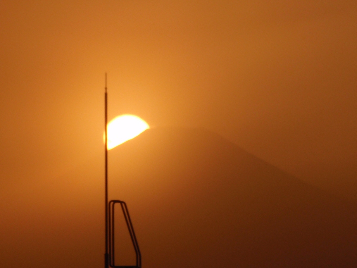 3月(そこまで遡るか(^_^;))に都内や横浜でも急に視界が 利かなくなる「煙霧」という現象がありましたね。 その瞬間は、デパート内に居たので生では見ていないのですが、 その日は自宅からダイアモンド富士が見える日でもあったのです。 視界が悪ければ見えるはずはない。 けれど天気が良過ぎても眩しくて見づらいので、 素人が写真を撮るには、富士山が見える程度の薄曇りという 微妙な気象条件が求められます。