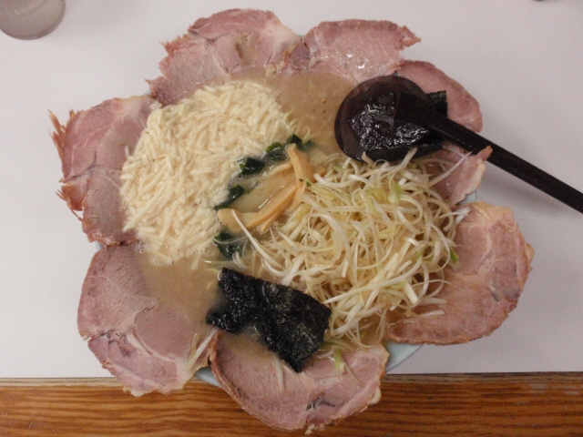 最近は大喰いしなくなりましたが、福生に仕事で出かける用事があったので、 帰りに「壱発ラーメン福生店」に立ち寄り、ネギとろチャーシュー普通盛りを 食べました(1100円)。チャーシューの花盛りが特徴的で美味いです。