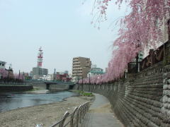 南関東と北関東、桜の見頃は約1週間くらい違うのだろうか? 再び栃木県を訪れた。今回は宇都宮である。まず市外の川に咲くしだれ桜をカメラに収め、バスで日光街道を進む。日光街道の桜並木は、ソメイヨシノではなく、山桜が中心である。花が先ではなく、葉も一緒に出てくるので見頃がわかりにくい。上戸祭付近は花びらがかなり散っていたが、まだ見頃と言える状態であった。北上したところの石那田付近は、まだまだという感じである。しかし、山桜以外は満開のようである。