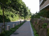 2003年12月、この公団住宅の入居が始まった頃には、焼餅坂の入口に当るところの歩道脇に焼餅坂と旧東海道の説明板が設置され、公団と歩道の境は街道を意識したような石垣が築かれました。この少し後、私自身も東戸塚に引っ越してきました。