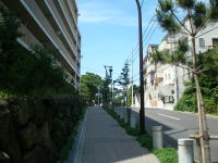 2003年8月、自分が購入したマンションの建設具合を見に訪れた際、焼餅坂にも立ち寄ってみると、こちらの建設も建物自体の工事は終了した様子。この時点では歩道に関して特に街道を意識したような配慮はまだ見られません。