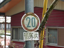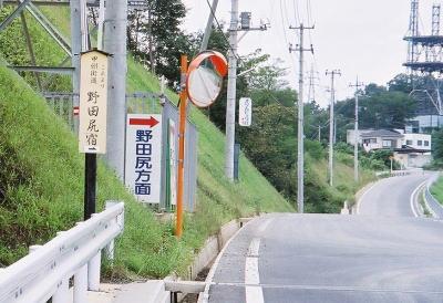 ほぼ直線の宿内を抜けると旧道は左に大きく曲がり(写真右の案内板があるところ)鶴川野田尻線の道を進む。