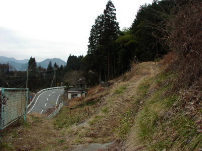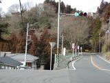 歩道橋を渡り、国道と垂直の道(県道30号大月上野原線)を下って行く。道の左側にある歩道はS字状の車道に対してショートカットで下ることができる。1回目のショートカット後、横断歩道を渡ったところにも歩行者用ショートカットの道がある。