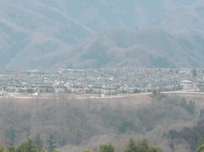 この後、少し登ると南に現代的な住宅の町並みが見える。四方津(しおつ)あたりであろう。