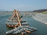 もうひつとは信玄堤である。竜王駅から西へ2キロ弱の釜無川の東岸である。約450年前、武田信玄公が甲府盆地を釜無川・御勅使(みだい)川の洪水から守るために行った治水工事の堤の一部であり、特に御勅使川の洪水の流れのコントロールは、日本の土木技術史でも一級のものとされる。