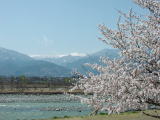 訪れるなら桜の季節が良さそうである。下の桜が写っている写真は2003年4月6日に撮影したものである。ここの桜を見ながら同時に富士山という構図は難しいようだが、信玄橋からは富士山がよく見える(下写真右端)。