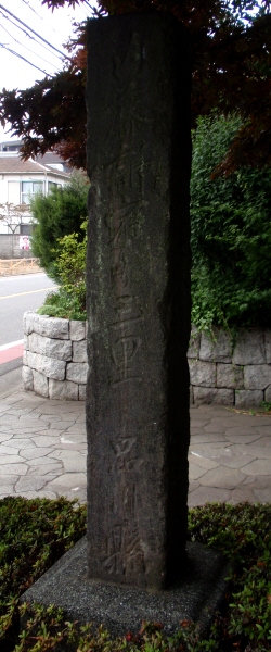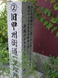 上北沢の一里塚跡から3キロほど西に進んだ給田町の交差点(国道20号ではなく旧甲州街道)の先の右(北)側の民家の前に新一里塚の碑があります。新といっても明治3年に建立されたものです。品川縣により内藤新宿(現在の新宿御苑内にあった高遠藩内藤家下屋敷)を起点として甲州街道に建立されたため、元の一里塚とは800m程度ずれています。新一里塚の道標は、幡ヶ谷村、下高井戸宿、給田村、国領宿、染谷村、番場村の計六ケ所に配られたましたが、現存するのは給田の一つのみ。一度は世田谷区立郷土資料館に寄付されたそうですが、昭和59年(1984年)に元の位置に近い現在地に碑のみ復元されました。