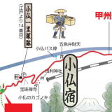 実際に黒野田側から歩いたときの時間では、笹子峠のトンネル手前が中間でしたが、これは峠を越えた後の方が、現代はショートカット出来るルートが少ないことも要因です。