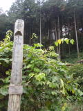 笹子峠を越えた後も、所々旧道と言われるショートカットコースがありますが、麓に近い部分は一般的には車道を下ってくることになり、天狗橋を渡り左折すると駒飼宿となります。一里塚は、その天狗橋を渡った後、宿場とは反対方向に向かって行くとあります。最近は動物除けの柵が設置されましたが、入ってもいいようです。入口から3分程度でしょうか、コンクリートの道がなくなってから50mくらいのところです。ほとんど人が通らないので、現地に行くのは年々困難になりそうです。標柱には「甲州街道の往来が盛んなころ、憩いの場所として道標があった所」と書かれています。