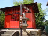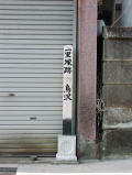 新宿通りを伊勢丹本館などある新宿三丁目の交差点(青梅街道と甲州道中の追分)で左折し、明治通りを100mほど進み国道20号(甲州街道)に新宿交差点4丁目で右折する辺りに一里塚があったようです。時の鐘で知られる天龍寺境内とも云われています(ただし、天龍寺がこの地に移転してきたのは天和3年(1683年))。分間延絵図では、街道沿いではなく、街道と玉川用水の間には家々が建ち並び、玉川用水を越えた脇に一里塚が描かれています。塚は榎が枯れた際に崩され平地にしてしまったそうです。宝永7年(1710年)、そこに稲荷を勧請して建てたのが子安(子育?)稲荷大明神。近くに現存する雷電稲荷神社のことなのかはまだ調べていません。