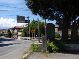 歴史の道調査報告書の地図には、この木柱の位置を一里塚としていますが、道筋の推定と現状の第5図では、国道20号に合流するところ(ガソリンスタンドの辺り)に一里塚跡の記載があります(文章では全く触れられていません)。でも、この大和橋西詰の交差点から次の横吹一里塚までは3キロもないので、駒飼宿の手前が正しそうです。この影響なのか、日影と横吹の間に一里塚があるとして、総計53に合わせている文献もあります。