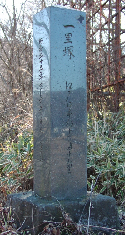 日本橋から下諏訪まで53里11丁ということで間に53個の一里塚とするのは尤もです。しかし、1里=3.927kmですが、甲州道中の一里塚は平均的に約4.0km間隔のところが多いようです。53里11丁=209kmの間に4km毎なら52個でも納得できます。よって江戸から53里のところの一里塚が52番目というズレが生じてもおかしくありません。