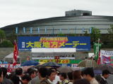大阪城公園に降り立つと、メーデーの群集に迎えられた。高麗橋は2001年暮れに改修工事が行われた。東京の日本橋と同じく頭上に高速道が走っている。