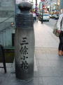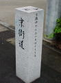 大阪市内は「歴史の散歩道・京街道」として「つたい石」が施されて箇所がある。これを目印に歩けばよいのだが、まだ完全ではない。所々に道標もある。雨は降ったり止んだりである。