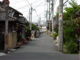 駅名は樟葉という字を使うがが、町名は楠葉である。淀川の河原は、ゴルフコースになっているが、右を見ると41階建ての高層マンションが建設中であった。街道らしい町並みもあり、特に橋本は古い家並みが見られる。
