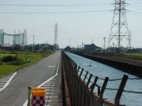 | 万場大橋 | 水面の高い海部水路 | 木曽川の岸は砂浜 | 対岸が遠い木曽川 |