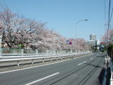 旧東海道に戻り、しばらく歩くと右手にスーパーへの歩道橋がある。何か食べたり、トイレを利用したり、ちょっと休憩するのにちょうどいいところである。屋上からは富士山も見えます。この辺り、以前は旧道が判りにくかったのですが、2001年の春には新たに案内板が設置されています。一応、下記の写真で説明。左端の写真のところは案内板に従って右折。環状2号に掛かる歩道橋手前には銅板の案内板あり。歩道橋を降りたらすぐ右へ入る道へ(写真左から2番目)。次はすぐに左に(写真左から3番目)。後は道なりに進みます。品濃口の川上川沿いもサクラがきれいなところです(写真右端)。