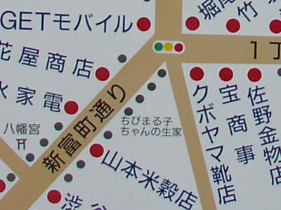稚児橋を渡った後の交差点を右に行くのが東海道であり、左に行くと「さくらももこ」の生家跡があるようだ。商店街の案内板には今も「ちびまる子ちゃんの生家」が書かれている。