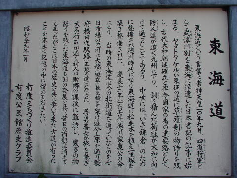 (実際の東海道ウォークのときには気づかなかったが、旧道に入って数分のところに辻一里塚跡(写真右端)や高札場跡などが設置されている)