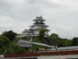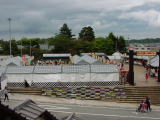 掛川の新町七曲がりは入り口には標識があった。後はそれらしいところを歩き、掛川城の大手門に着いたとき、時刻は午後3時20分。掛川御城下まつりの大名行列は終わってしまったようだ。三の丸広場では楽市が行われていた。まともに昼食を取っていなかったので、何か食べようと思ったが、これといったものはないようだ。それに雨で縁台が濡れていて座っている人がいない。このとき雨は止んでいた。ビニルに覆われているのだから店を出している人が拭いてくれれば良いのにと思ったが、商店街に戻り、ラーメンを食べた。