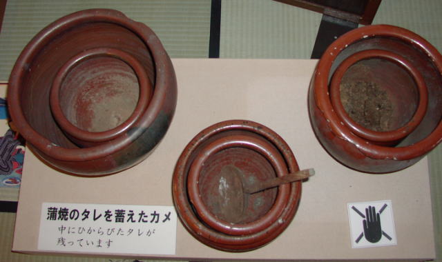 新居関所に対し道の反対側を少し進んだところには、旅籠紀伊国屋資料館がある(入館料200円)。東海道ウォークとして歩いたときは、まだオープンしていなかったが、2001年10月に開館した。私は、2002年の1月に訪れた。旅籠なので本陣の造りとは異なり、大きな民宿といった感じである。紀伊国屋名物の鰻蒲焼の複製は、関所の資料館のものと同じようだ。蒲焼のたれを蓄えたカメは、実際には見え難いが、フラッシュ付で写真を撮ると良く分かる。