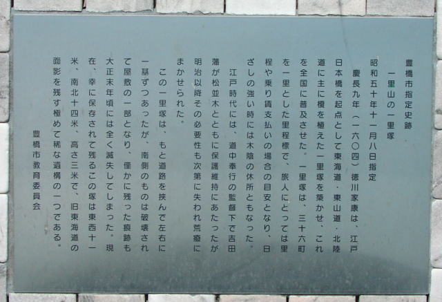 バスに乗るには、一里山東と一里山の交差点の間に位置する一里山のバス停を利用するのだが、話をしていたためか通り過ぎたようで、ご迷惑をお掛けしたかもしれない。そして、一里山(細谷)一里塚(写真右)も見逃してしまったのである。次の東海道ウォークの前日に立ち寄って写真を撮った。説明板には現存しているように書かれているが、東海道さんさくマップには、「今は塚も榎もないが、場所は市史跡として保護されている」となっている。道路の拡幅工事も行われているので、現存すると言えるのか賛否が分かれるところである。