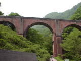 立ち寄りたかった目的地は、旧信越本線の碓氷第三橋梁、通称めがね橋である。国の重要文化財にも指定されている。35番目のカーブのところに駐車スペースがあったのでクルマを停め、見学した。時刻は13時7分である。レンガ造りのアーチ橋でレンガは200万個も使われているそうだ。現代ならともかく、明治26年(1893年)に造ったとは大した技術である。