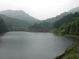 この湖は坂本ダムにもなっている。黒部ダムの放流ほど豪快ではないが、水が流れ落ち(写真右)、碓氷川を流れて行く。