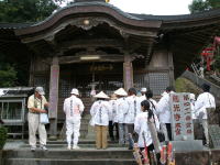 本堂へ行き、ロウソクと線香(3本)をあげる。火は持参のライターか種火として用意されているものを用いる。種火用以外のろうそくからもらい火をしてはいけない。風が強いとライターでつけるのは難しい。雨や風のときは先達さんが種火を用意してくれるので有難い。ロウソクや線香は後からの人が火傷をしないよう上の段の中心部からお供えする。そういう気づかいの精神が大事なのだと思う。この辺は順不動なのであるが、納め札を収め札入れに入れる。似たようなものとして写経入れもある。これは般若心経を自分で書き写したものを入れるもの。我々はここまではやらなかったが、功徳があるので各寺に収めて廻るのもいいだろう。納め札には、事前に自分の住所(番地までは書かない)と氏名、数えでの年齢を記入しておく。御接待を受けた場合は、名刺代わりに渡すようだが、クルマで廻るとそういう機会はあまりない。納め札の裏に願い事なども書いていいようだ。この納め札、お四国を廻った回数によりその色が異なる。客寄せに作った習慣のような気もするが、1〜4回目は白、8割以上がこれではないだろうか。今回のツアーで一緒だった人は皆白であった。5〜7回目が緑、8〜24回目が赤、25〜49回目が銀、50〜99回目は金、100回以上となると錦となる。金や錦ともなると功徳があるので、札入れに納められている中から持ってきてもいいことになっている。ただ、よくない霊を呼んでしまうこともあるので注意した方がいいらしい。