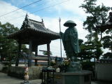 金泉寺から約7キロ。町中から少し離れたところにある。朱塗りの山門の上部に鐘楼がある。参道のある大きな植木鉢のようなものに水が張られ、睡蓮が花を咲かせていた。写真の色はイマイチだが実際には紫のきれいな色をしていた。大師堂には賓頭盧尊者(びんずるそんじゃ)の像がある。除病の撫仏で、右手と左手で三回ずつやさしく頭をなでると無病が約束されるという。赤身は酒を飲み過ぎたからとも云われるが、これは俗説で、本当の意味は生命が充満して生気の血がみなぎっているさまをいい、それは修行が最高に高まった状態をいうようだ。