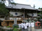 8時30分に2日目最初の札所に到着。1日目は寺間の移動距離は短かったが、2日目は短いところもあるが、クルマルートだと40キロ以上離れたところもある。歩き遍路ならクルマの通れないところを歩くことになる。少しでも時間を短縮するためにか、山門前の記念写真は効率よく廻すように数人まとめて並ぶようになる。それでも各人のカメラで写してもらえる。
