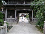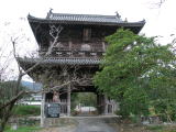 参拝後、クルマで約300m南下し、仁王門の中をクルマで通り(これにはビックリ!)、一旦下車し、カメラに収める。この仁王門は貞享4年(1687年)に建造され、木造山門としては四国霊場で最大で高さは13.2m、県指定の重要文化財になっている。ちなみに中央の幅は3.85mあるそうだが、金属製のポールがあるため大型車は通れないようだ。