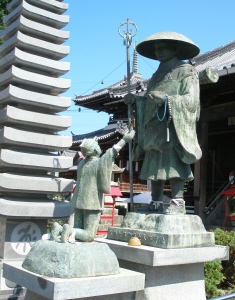 | 第七十七番札所 道隆寺 弘法大師の前に膝まづく衛門三郎 |
