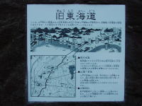 2004年7月に見に行ったときには、入口には、「左旧東海道」「右環状二号線」と彫られた道標がありました。先の焼餅坂の説明板には穴があけられていました(2007年には修復されました)。この後、歩道には松が植えられ、旧東海道としての面影を意識したものになっています。なお、このときは、まだ両側に木立という箇所もわずかに存在していました。今はありません。