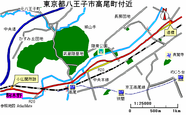 甲州街道は国道20号を進む。私が甲州街道ウォークとして歩いたときは、まだ十分に調査していなかったのでそのまま国道を高尾へと進んだが、実際には2ヶ所ほど国道から逸れる旧道があるようである。一つ目は西八王子駅付近を過ぎ、長房団地入口の交差点を右に入る。この付近に一里塚跡があるはずなのだが、私は発見できていない。
