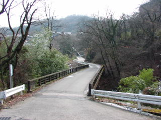 中央道につき当たったところを本来は斜めに横断したようだが、今は橋を渡るしかない。以前の地図だとつき当たってすぐに橋を渡り、その後、中央道と平行に進んでから左折して大椚に向かったようであるが、現在は鶴川側で中央道と平行に進んだ後の橋を渡り、そのまま道なりに進んで大椚に入る。