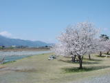 訪れるなら桜の季節が良さそうである。下の桜が写っている写真は2003年4月6日に撮影したものである。ここの桜を見ながら同時に富士山という構図は難しいようだが、信玄橋からは富士山がよく見える(下写真右端)。