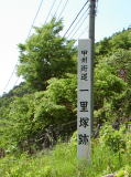 山梨県の歴史の道調査報告書には、その旧道が県道に出る少し手前を笹子峠の一里塚としています。ただし、この位置だと黒野田からは3キロしかなく、次の日影まではショートカットコースのかつての旧道を想定しても5キロはあります。距離的には矢立の杉付近が中間点に相当しそうです。矢立一里塚としている文献もあるようです。
