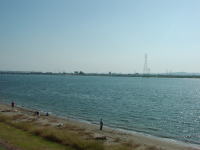 | 万場大橋 | 水面の高い海部水路 | 木曽川の岸は砂浜 | 対岸が遠い木曽川 |