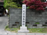 丁子屋は開店時に入店。外観からするとそれほど大きくないと思われたが、店内はいくつも部屋がある。かなりの集客能力がありそうだが、休日は待たされることもあるそうだ。定食で一番安い丸子定食でも1300円するが、麦入りご飯にとろろ汁、味噌汁とお新香のみでちょっと物足りない。丸子という名でないものは丸子に付け合せが増えるものである。一人客でもお櫃でご飯が運ばれ、三杯分ほどある。とろろが苦手な人(そういう人は来ない方がよいと思うが)は、一品料理で刺身と卵焼きくらいか。店内に展示品コーナー(写真左)もあり、丸子紅茶も販売していた。店の横には十返舎一九膝栗毛の碑もある。