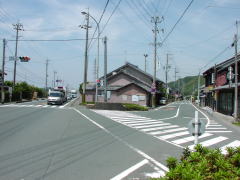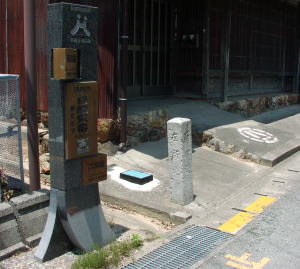 関所や紀伊国屋を過ぎるとT字路となる道の突き当たりに本陣跡(写真左)、東海道は左折する(この周辺に本陣跡は計3ヶ所ある)。