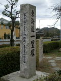 今回、2日で50キロくらい歩いたので、一里塚は12箇所くらいはあるはずだが・・・。夏目一里塚跡や石部一里塚跡は、本に場所が載っているが、碑はないようである。地元の人もよく分からないようだった。石部一里塚は、角のタバコの自販機のある家から3件目のところと教えてもらったが、本に載っている位置と微妙に違う。旧和中散本舗近くと、目川池近くの一里塚跡も載っている本はあるが、日没後に歩いていたため発見できず。(現在、石部、六地蔵は新設され、目川は更新されました)