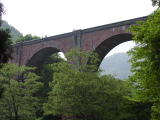 立ち寄りたかった目的地は、旧信越本線の碓氷第三橋梁、通称めがね橋である。国の重要文化財にも指定されている。35番目のカーブのところに駐車スペースがあったのでクルマを停め、見学した。時刻は13時7分である。レンガ造りのアーチ橋でレンガは200万個も使われているそうだ。現代ならともかく、明治26年(1893年)に造ったとは大した技術である。