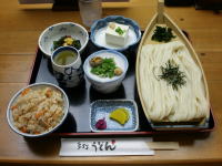 常楽寺を出発した時点で12時10分を過ぎていた。二日目の昼食も運転手さんご推薦のうどん屋さんである。「日愛うどん」というところで「ざるうどん定食」(924円)を食べた。ざるというより舟盛りという方が相応しい。
